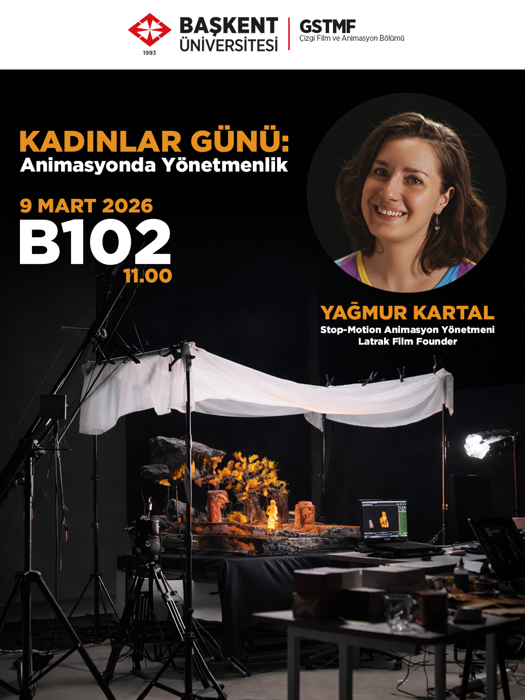 Çizgi Film ve Animasyon bölümü olarak düzenlediğimiz “Kadınlar Günü: Animasyonda Yönetmenlik” başlıklı söyleşide Yağmur KARTAL (Stop Motion Animasyon Yönetmeni/Latrak Film Founder) 9 Mart 2026 tarihinde saat 11.00’da bizlerle bir araya gelecek!