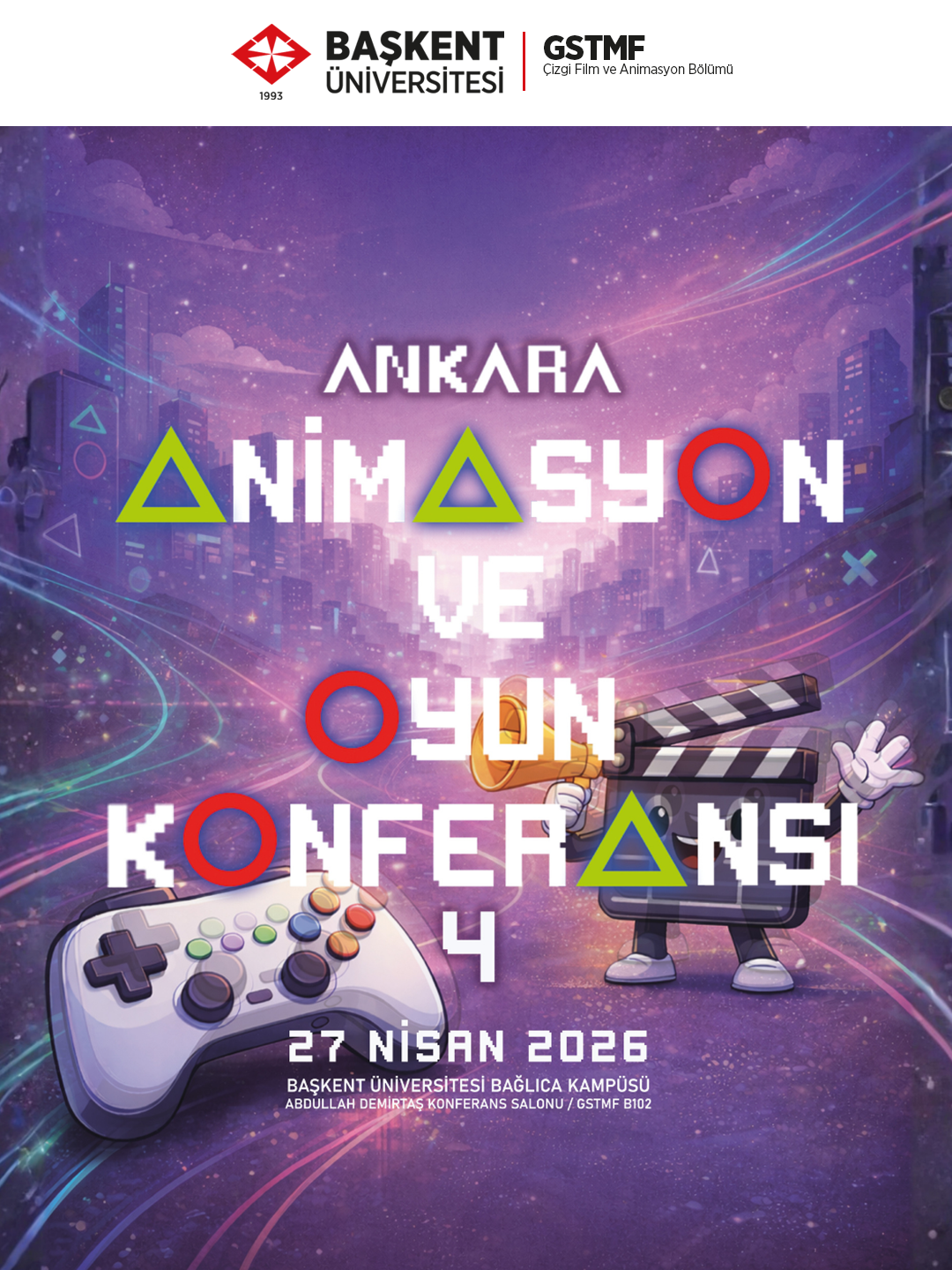 Çizgi Film ve Animasyon bölümü olarak düzenlediğimiz "Ankara Animasyon ve Oyun Konferansı 4", 27 Nisan 2026 tarihinde Başkent Üniversitesi Bağlıca Kampüsünde gerçekleşecektir.